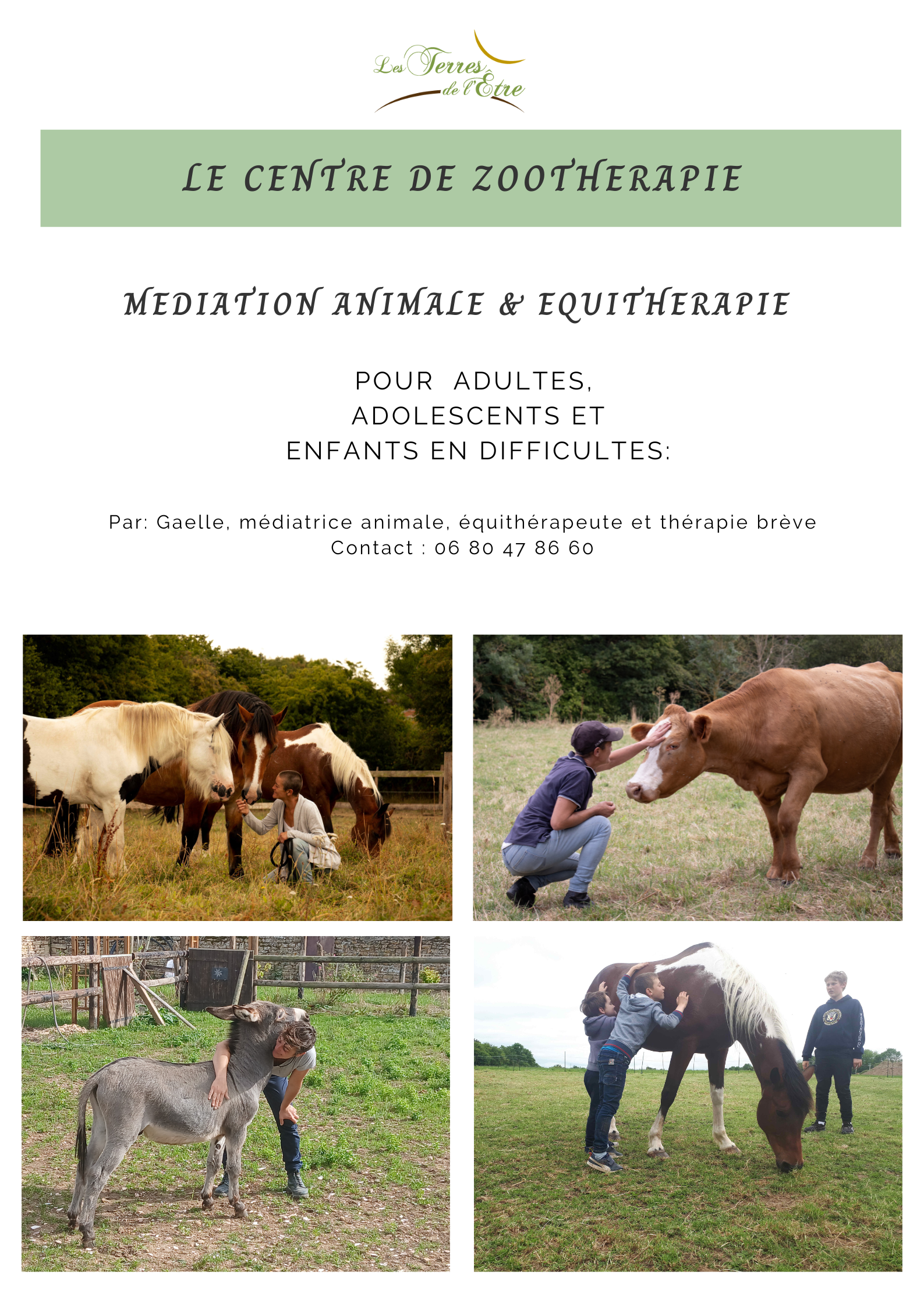 un centre de zoothérapie avec médiation animale, équithérapie et thérapie brève,